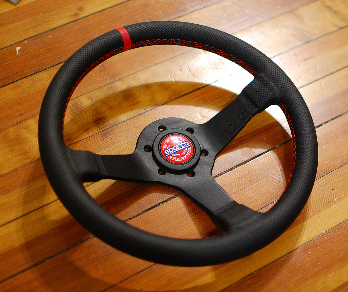 First, a Sparco Champion steering wheel. I've bene craving it for ages and figured that after 3 years of poverty ebay steering wheel... I can upgrade.