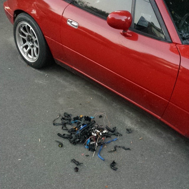 I finally got time to work on the car. I looked at the poor state of the wiring harness - it was modified so many times over the past 3 years... that I decided to redo it.