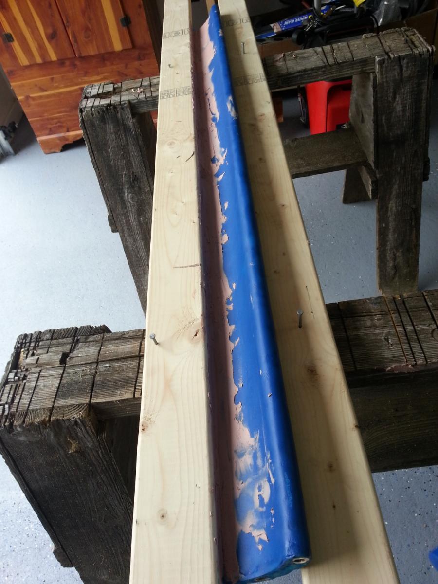 All that bondo stuck to the 2x4 and not the wing, lol. But now he's trying to make them look pretty anyways. Maybe I'll get more downforce out of it, not like I need more in the rear. I fixed the splitter, the supports on the splitter were quite bent and the welds started to crack, I hammered them square and welded the cracked welds back together. One of the braces was starting to come debonded and I glued it back down. And I touched up all the small chips with the epoxy for the bracing.