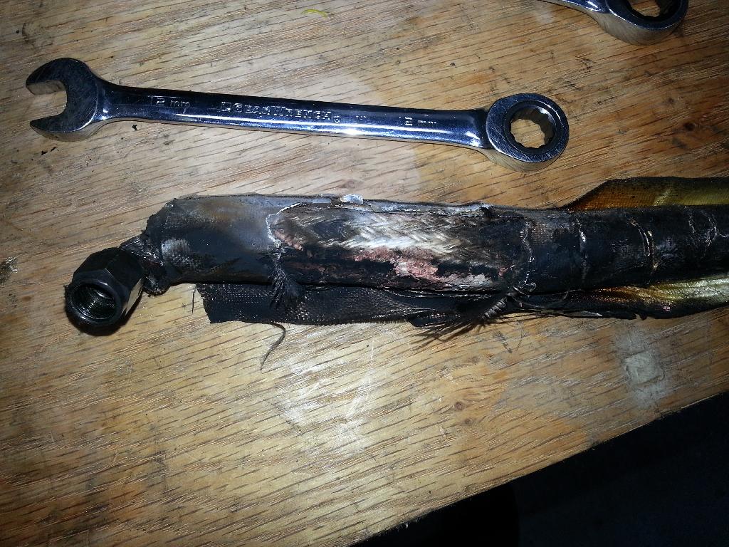 I was replacing the brass nipple that I knew was going to break again with a stainless one for the coolant line when I noticed the above. 2 of the turbo to manifold nuts came undone, the two that are hard to tighten. One of them I sinched back down because I couldnt get the nut off, the other one the locking mechanism was toast so I replaced it and got it a whole bunch tighter.