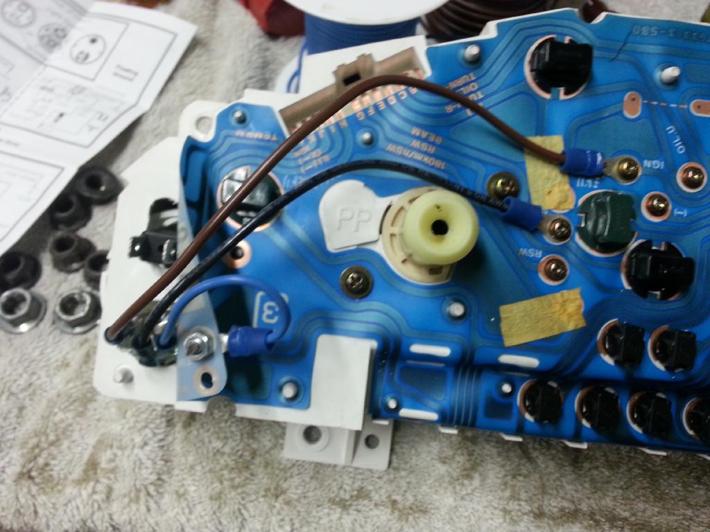 Pictures of the gauge mod, I decided to just tie the gauge light into the wires in the dash rather than try to solder to the flex board.