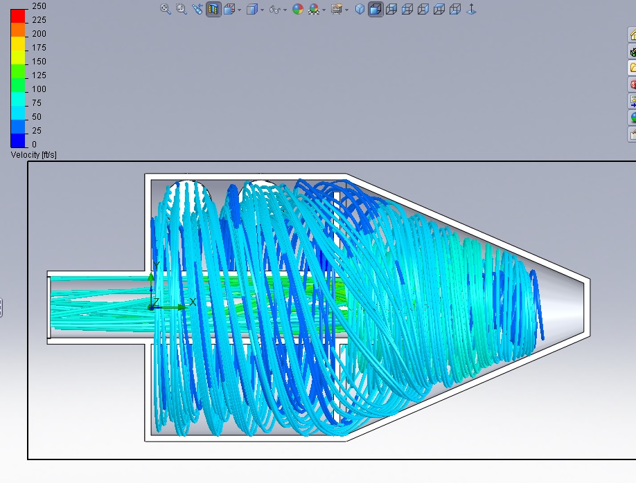 Whats interesting is the max mass flow rates hardly change between either of these. I cant tell which is better. The open tube makes the air turn more corners ~6 for the further inlet, compared to the ~4 for the holy tube. But the velocity is lower for holy tube, which may or maynot be a good thing for this design. Its definitely a good thing for normal baffled cans and for scrubble packed cans. But part of why this design supposedly works is that the inertial force on the oil throws it against the walls and it sticks to the walls, higher velocity = more inertial force. I'm going to try the open tube design unless I/we come up with something else.