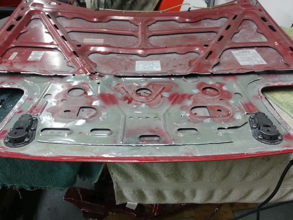 The hood's all cut up, headlight covers added, 1 headlight mocked up. I did just one side so I could figure out how to mount the catch can and where I could put the filter/intake stuff.