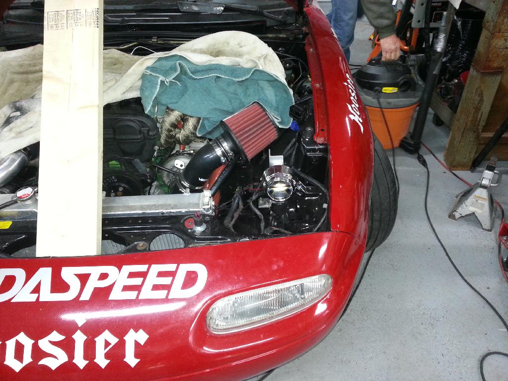 Didnt feel like I accomplished much but it was a lot of important things. The car is sitting on the ground, going to do a bit of free dyno work saturday, working on the above 6500 rpm area of the tune mostly want to see 300hp. Might work on the spool area, no idea how much time I'm going to get. I replaced the intake manifold gasket, no change in the vac leak. Pulled the injectors couldnt figure out why they were leaking at first. Then I realized I bent the tips of all of them when I put them in at some point so they werent actually seating in. Filed the aluminum until they would actually seat, put them in, problem solved. Pulled off the mother ******* re-route hose because the mother ******* piece of mother **** **** was mother ******* still ******* leaking like a mother ******. Re-adjusted it, put the clamp in a slightly different spot and it doenst seem to be ******* leaking any more. I also fixed the fuel leak at the new fuel line connection finally. So now its only leaking oil. It seems to be leaking from the top VVT banjo bolt and from the oil cooler to block connection. I cant seem to fix the oil cooler leak, its got a brand new mazda seal, and torqued to spec. The vvt line just needs new crush washers, they're on like their 5th use at this point so I guess its just their time.