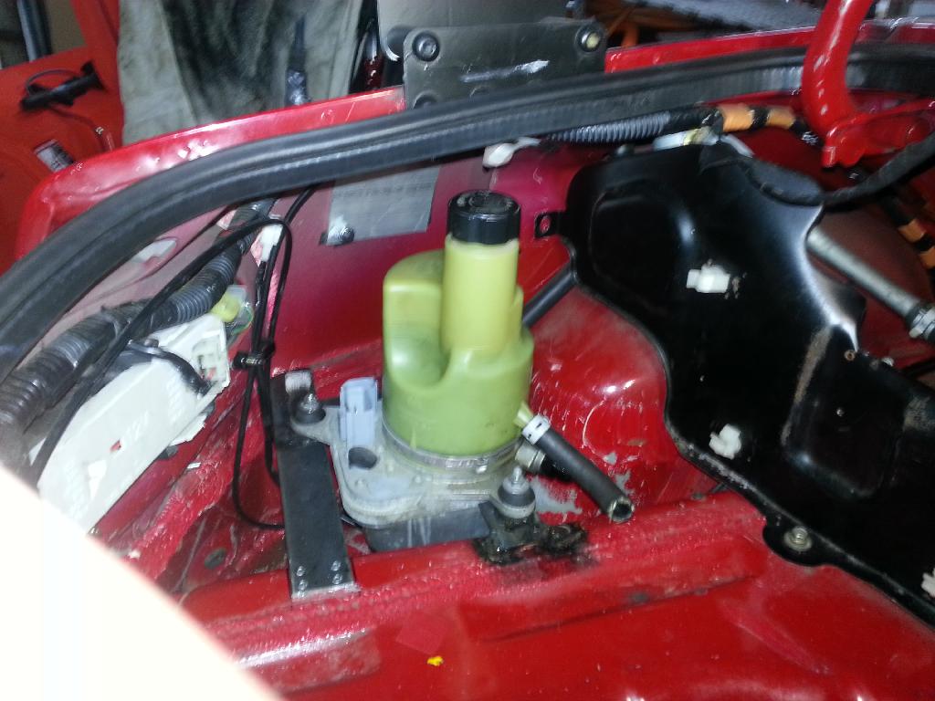 Power steering is plumbed, like a boss, looks like a professional job. I filled it, made a mess (the volvo reservoir does NOT hold a whole quart, ****), and ran it for a little bit with some super ******* ghetto wiring that involved a plastic spoon. I wanted so badly to just turn the pump on and crank the wheel back and forth with power steering but I doubt that janky wiring would have taken that kind of load, it was getting a bit warm just idling. The harness is on order from volvo, lets hope they dont have to order it from sweden.