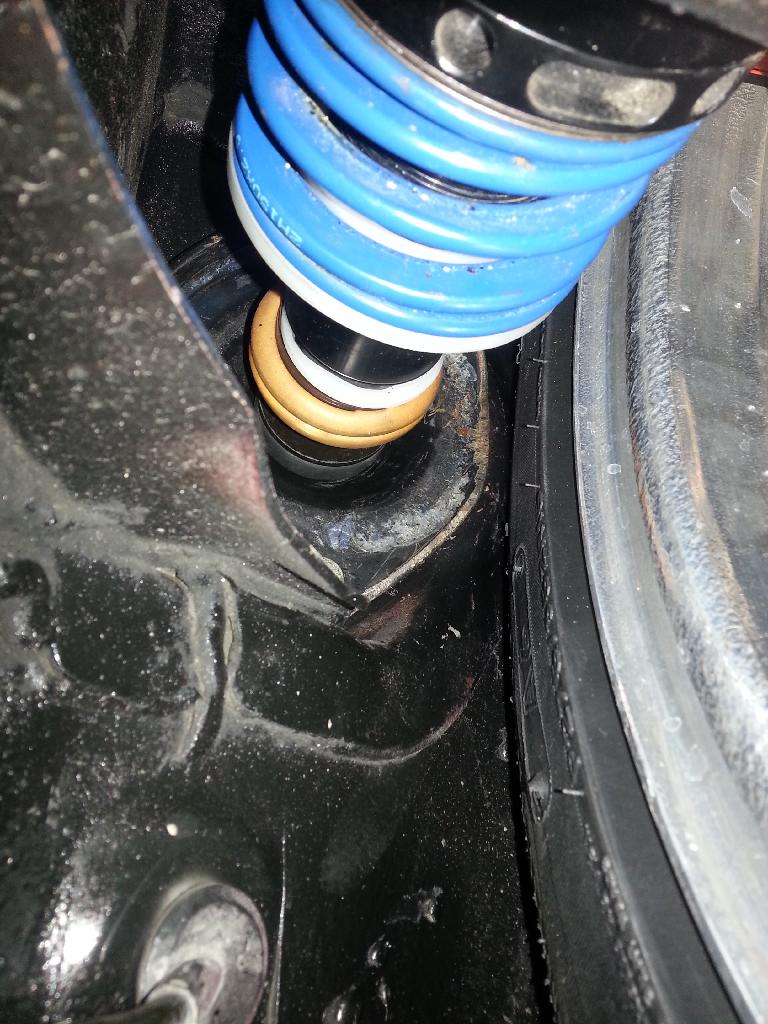 No I'm hitting the shock tower. If I add a half inch spacer (for a +9 offset) the tire hits the back of the wheel well at steering inputs I would use on course. Most people use +19, which is equivalent to a 15x10 6UL with a 6mm spacer. And most people, depending on their shock top hat design can get away with running just the 6UL with no spacer, they're +25. The sister car only rubs on the shock mount when its 6ULs are on it with no spacer. And has near zero rub with the same wheels, no spacer, and no bump stop at all.