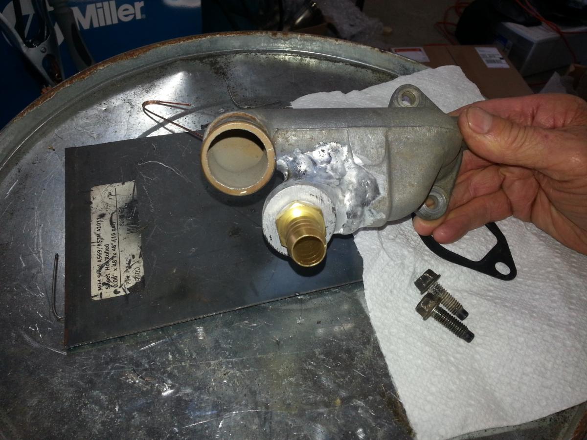 I sucked at taking pictures because I really didnt have time I need to get the ****** done so I can race it. So here is my pimp as **** water pump inlet, before I sealed up all the pin holes.