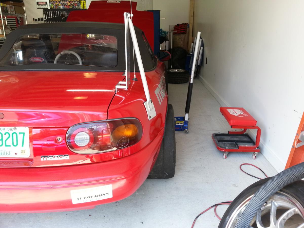 So I took it to a renegade miata even for one last shakedown and learn the car race before the national tour next weekend. The tow rig blew a brake line right after we put the car on the trailer and I was in no mood to fix it. So we put the wheels, splitter and tools in my dads truck and I drove it down with the wing on. Someone posted a picture of me in traffic to a local facebook car group thing, much lols came from the comments.