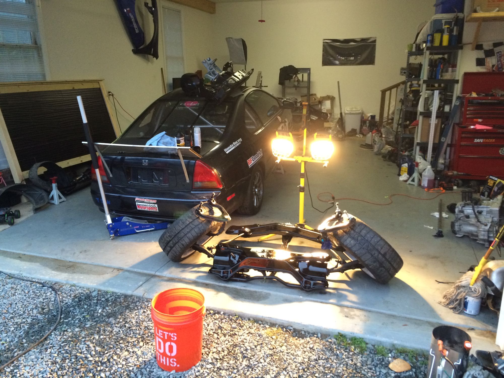 OEM 8th Gen Civic Si LSD into a TSX 6-speed transmission. Then I raced again. And I was too busy fixing driveshaft problems to take pictures. Or take video. Currently working with Driveshaft Shop to try to fix driveshaft issues. Basically inner boots tearing, and driver side axle popping out of the diff housing ~30 minutes into a race. Which is annoying.