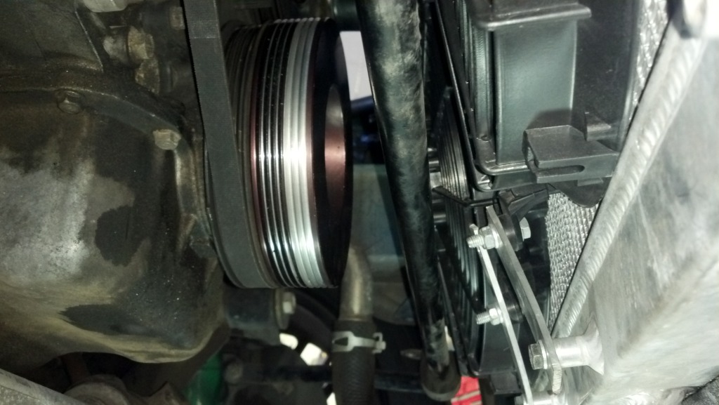 More ribs for her pleasure. I got a few more ribs cut into the overlay pulley that I had so now I can run a six rib belt. The tensioner pulley fits a 6 rib belt. I need to get another buick nose pulley though since I messed up the one I had. It happens to be slightly smaller too which will mean time for more boost.