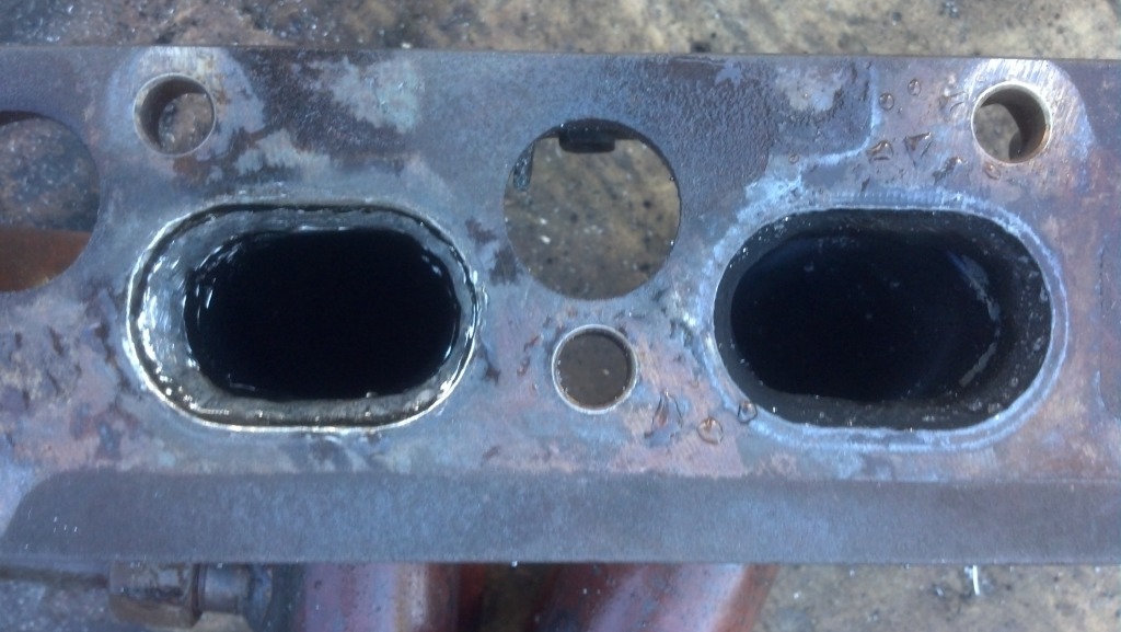 While I had the header out I decided to do something about the nasty internal welds that block a bunch of the ports.