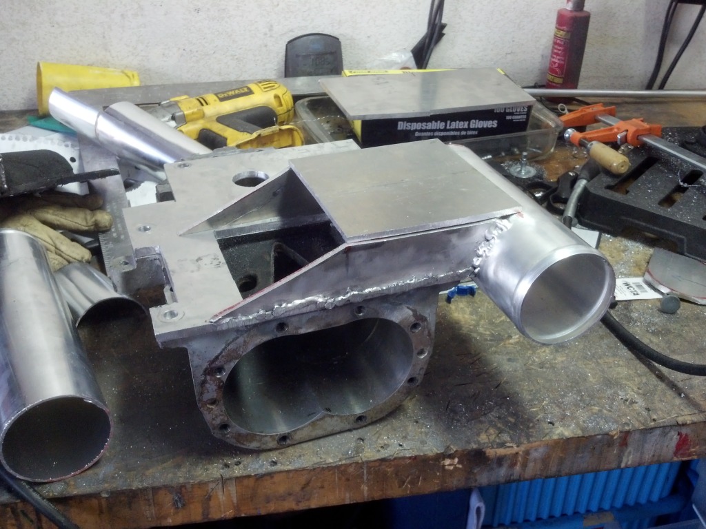 Did a little more work today. First I worked a bit on making the ports on the intake manifold smooth, got bored and decided to do something else. I then fitted the blower and worked a bit more on the supercharger manifold.