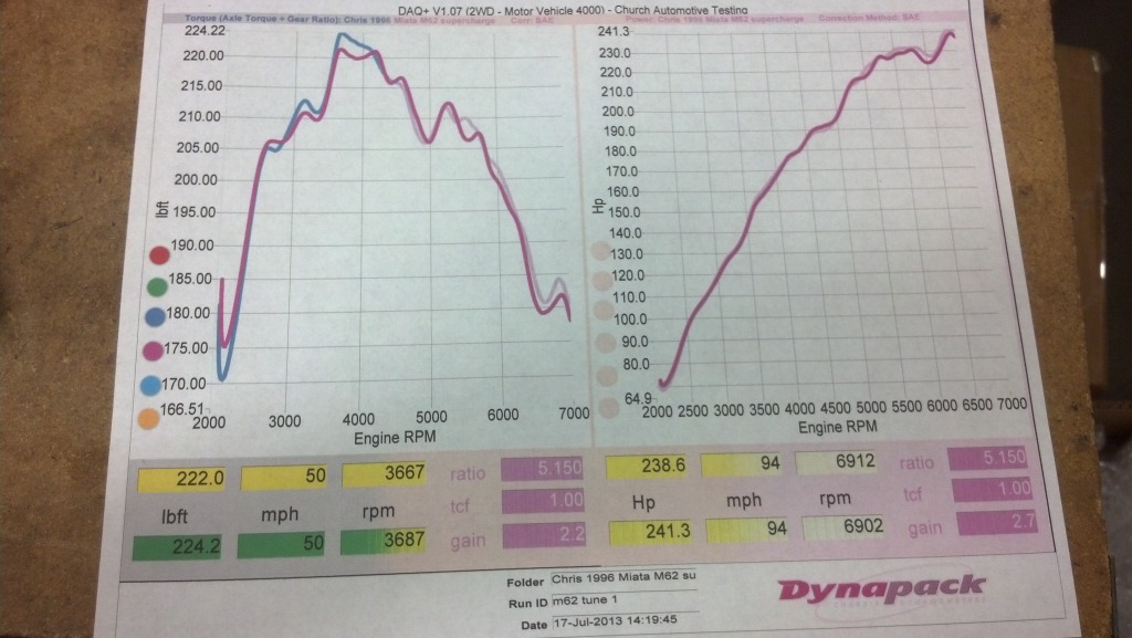 Productive day and I didn't even have to do much work! Started off by taking the car to be tuned. It made 241 hp and 224 ft-lbs at 13 psi of boost. Ambient weather was 80 and this was after several pulls so the system was warm at that point. I also asked for a conservative tune so there is more power in there.