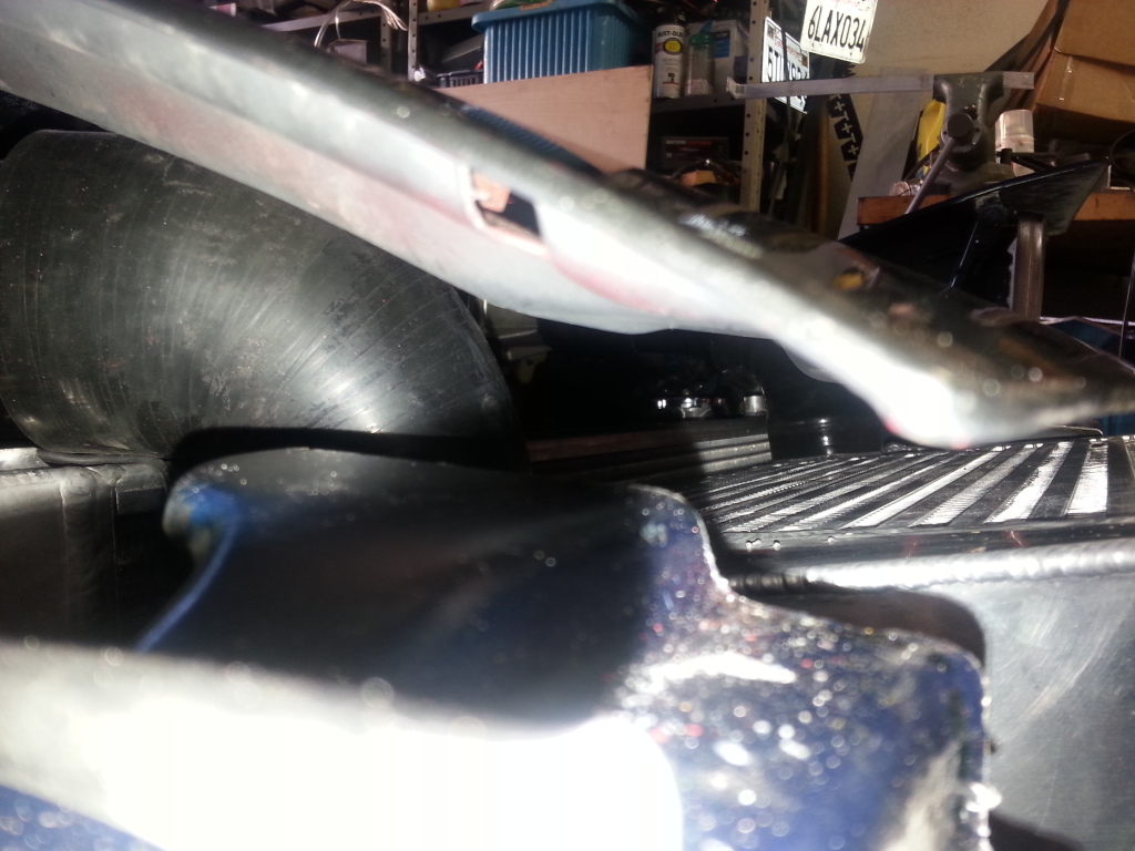 There is surprisingly a decent amount of space between the hood and the core. I plan to test it and see how well it cools. If I need it to cool better, I may cut the hood. I also plan to run separate ducting to the ic so it will probably not be needed.