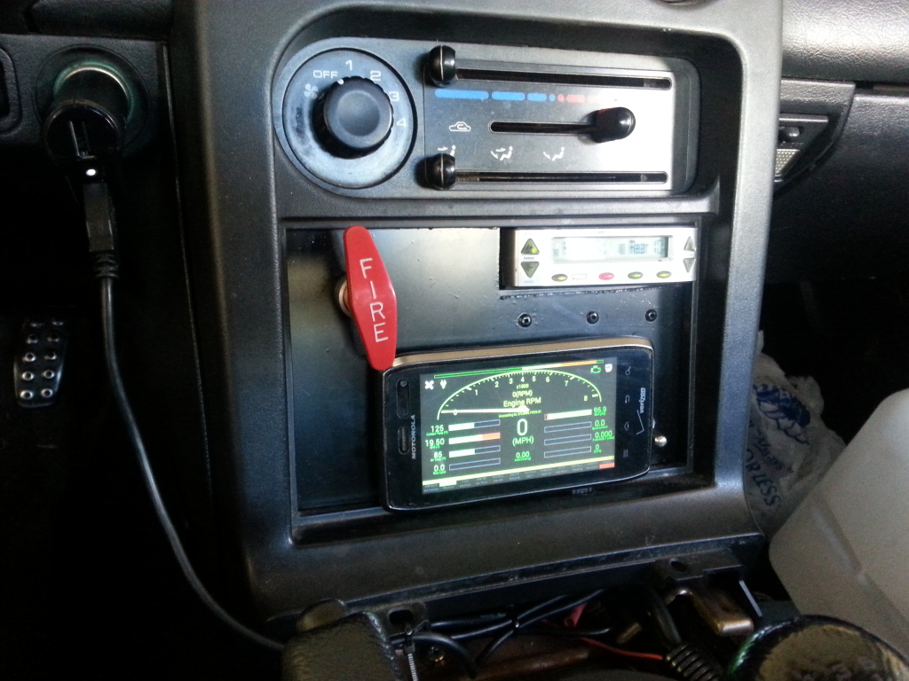 Lastly I mounted an old phone inside the car to read the MS. These are not the gauges I went with since they are too hard to read. Never got another pic of the changes. The other cool thing is I can change maps with the phone. I decided now that I can do that I am going to switch to running e85. Time for more power.