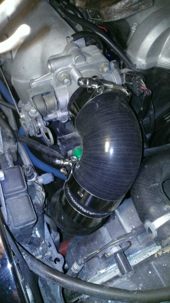 Cold side to TB was a bit challenging. Seems like some people get a 99 TB to get rid of the clutter of TPS and IAC. I chose to simply go over and around them, hoping to combine a 90 with a 45 and mimic the Begi hard pipe that I see in their install manual.