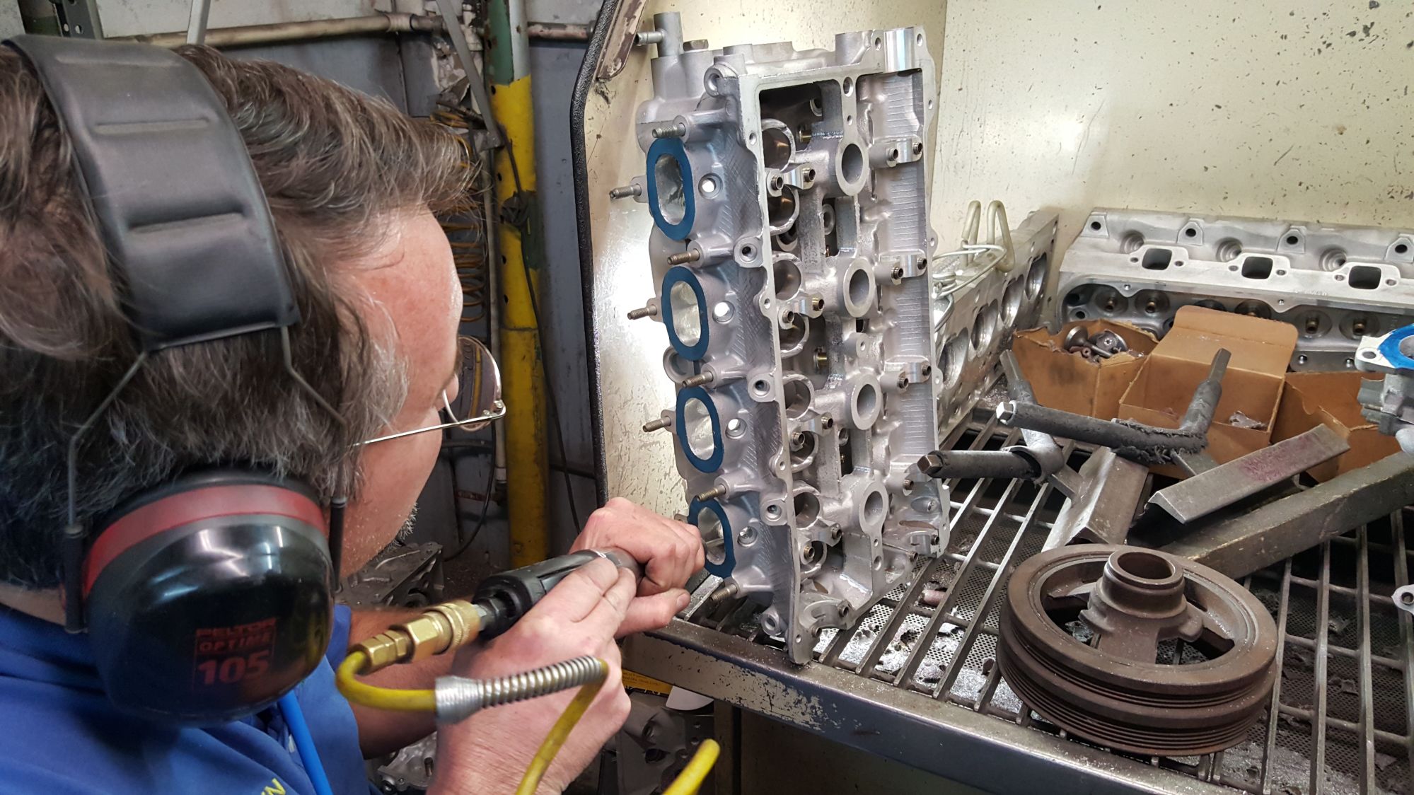 Back on the bench, every time Matt shows me the head I always find little things I want to shave down. He's starting to become amused at how open we're making the ports.