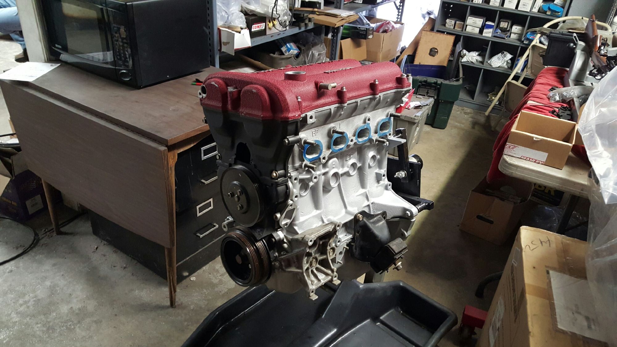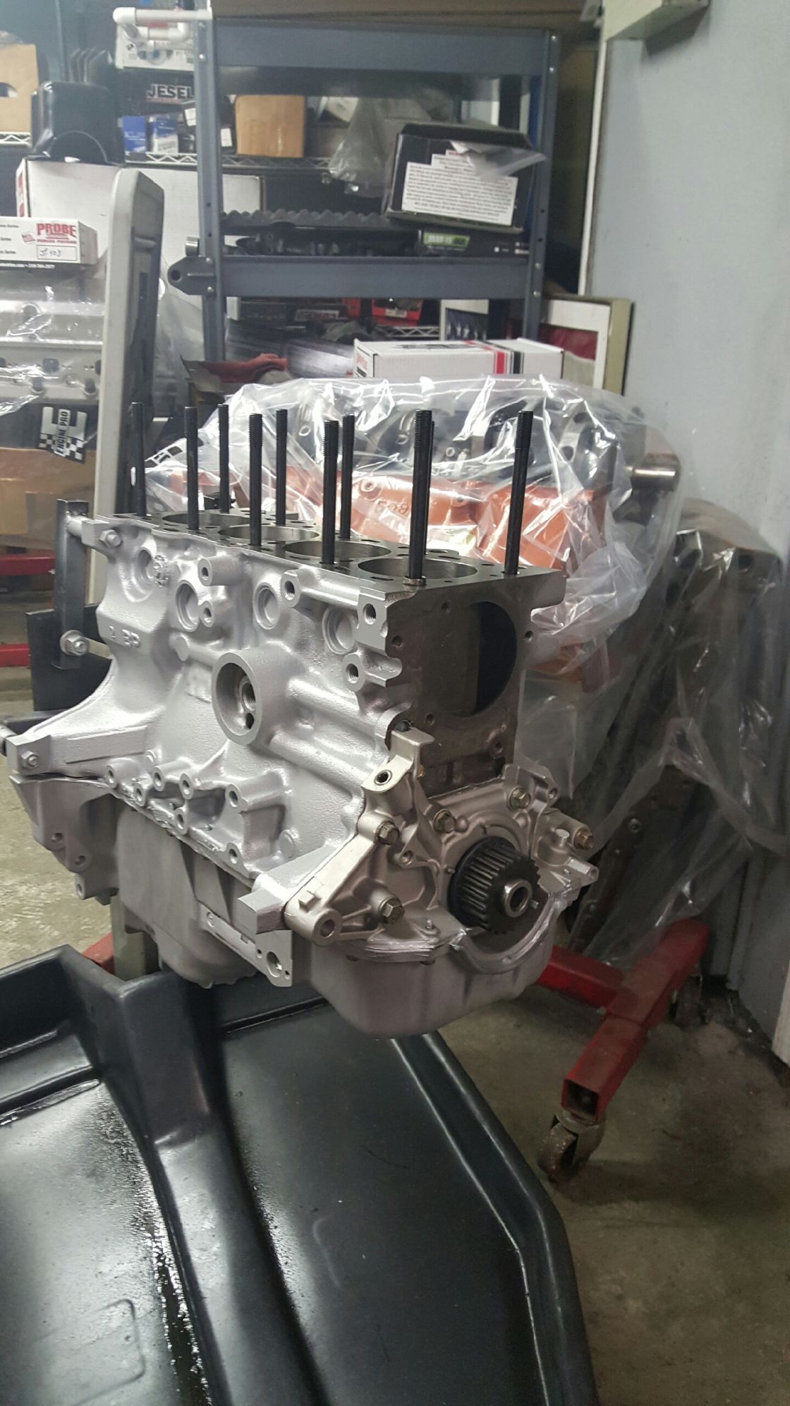My machinist had my spare 1.8 block that I had bought in the hopes of doing a cute little turbo build for my 1990. I picked up the long block about 2 weeks after I bought the first car, and had all but forgotten about it. I disassembled the entire motor myself and left it abandoned for 30+ weeks without any plans to move forward. So yes, I was "that guy" who does a half assed build and never follows through.