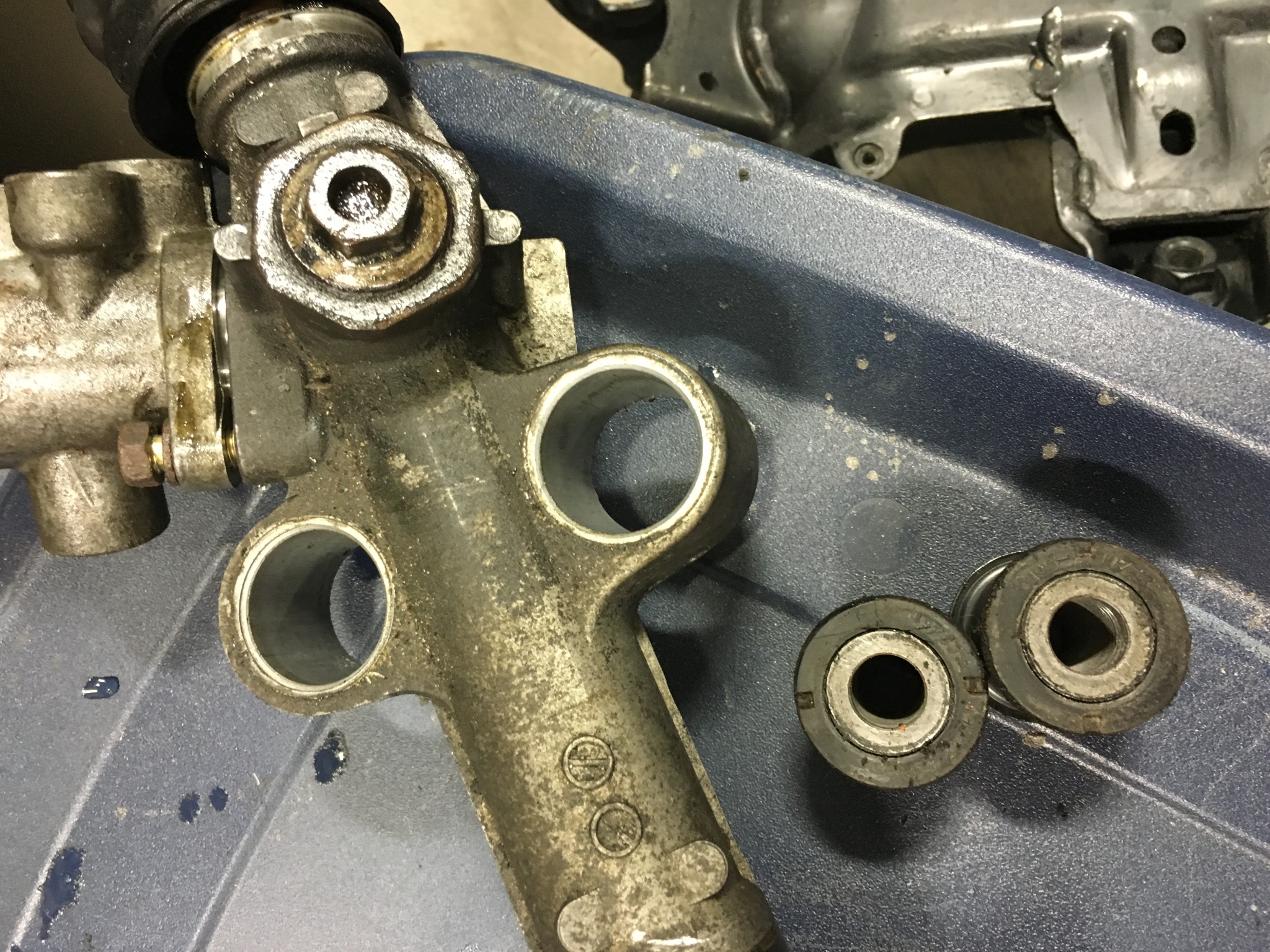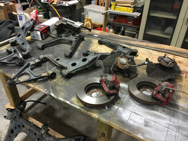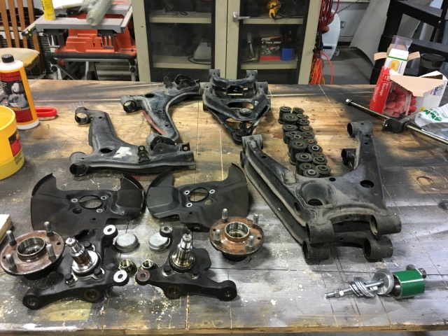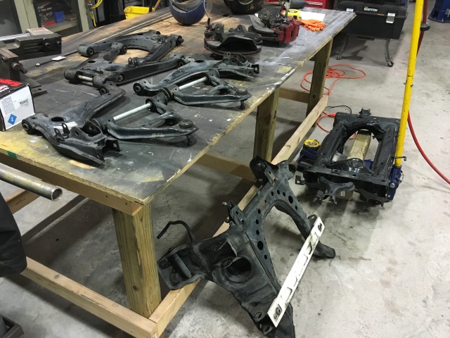 In other news, I got the rear subframe out and have begun the process of removing bearings and bushings. Pictures to update progress soon.