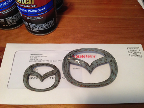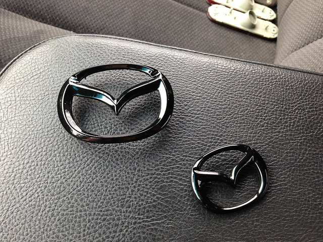 started pulling all the emblems, I am bleaching the front and rear mazda logos and then painting them black. a few pics of during and after all the tape residue removal