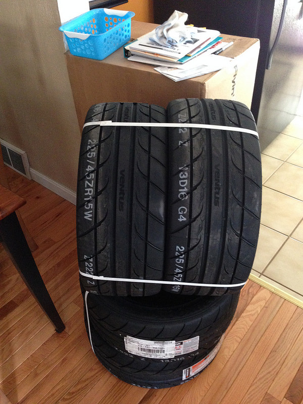 the tires came in the mail yesterday, dropped them off to get mounted and balanced with the jonglongdongs. Ill pick them up after work and get pics tonight after i get them put on the car