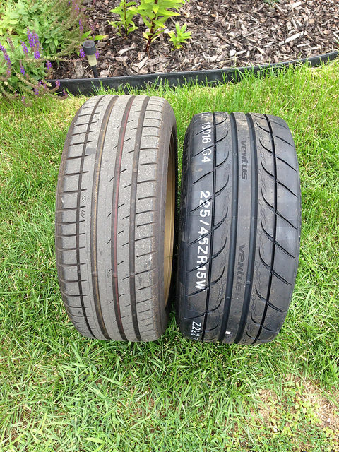 Obligatory comparison pic of the wheels that were on and the wheels going on the car.