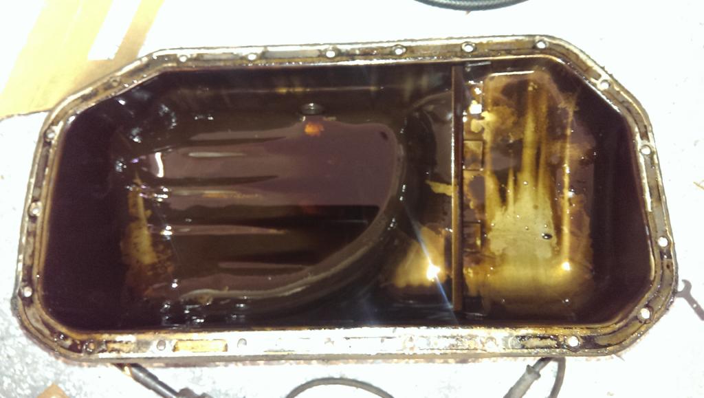 Engine out and doing the oil pan. Cleaned it out really good, everything under the engine looks very clean.