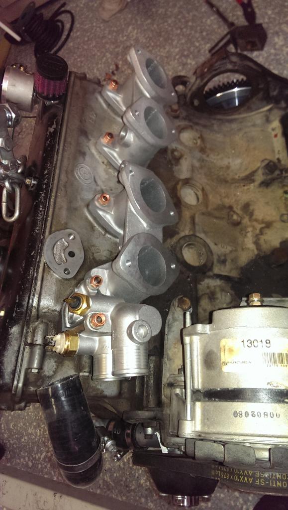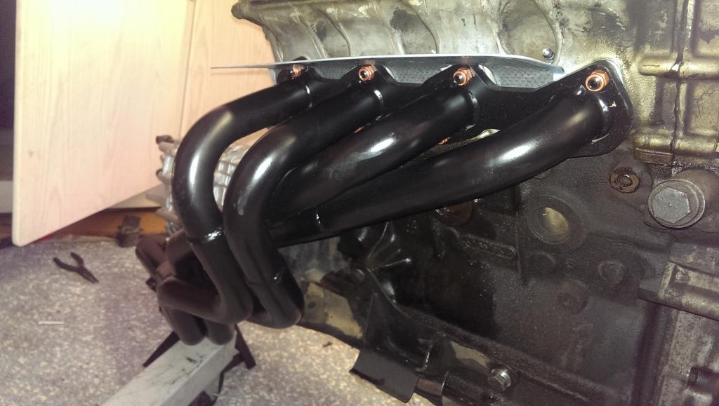 Manifolds on, had to grind down the manifold a tiny bit to get some of the bolts on, they are a TIGHT fit