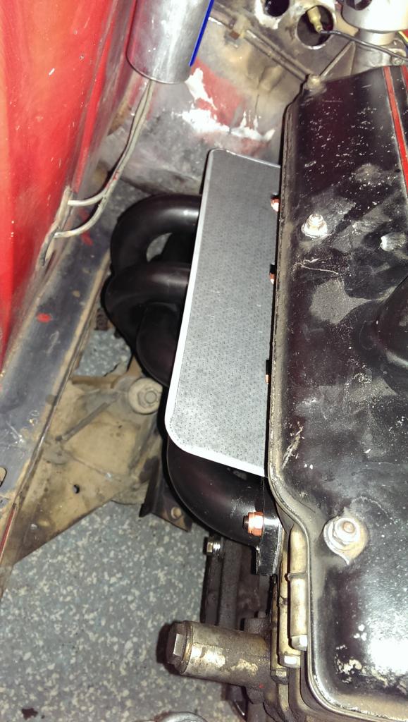 I really love this heat shield that came with the headers. The spark plug wires run right above it and before they were getting really hot, had to wrap them in some heat resistant sheathing. Now it shouldn't be much of a problem, and looks pretty clean.