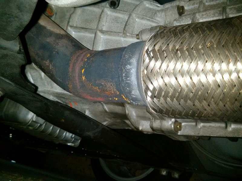 The midpipe is mild steel, so it probably doesn't help having the air conditioning drain dump straight onto it (see rubber hose at top of pic):