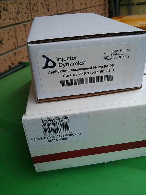 I borrowed a friend's timing map and did some rough calculations to get a starting fuel map. For now I'm still running on the yellow Denso RX-8 injectors but I will be fitting the ID725s shortly. I also need to work on some brackets for mounting the ECU so it can't move around.