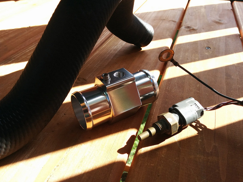 I had to tap the thread in the coolant sensor block to suit the OE thermistor (12mm x 1.5mm), props to Lokiel for loan of the tools. The hose pictured is the bottom radiator hose which I will cut to fit the sensor block inline. I already have a thermistor fitted very close to the radiator inlet, so with this extra sensor I will be able to see the inlet/outlet deltas with good accuracy.