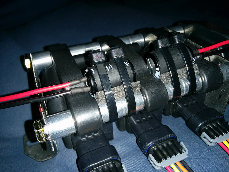 I have a few side projects going on, first of all I am trying some LS3 coils. The factory ignition wiring is a bit on the light side so I'm hoping to minimise voltage drop due to inrush current by using some beefy caps: