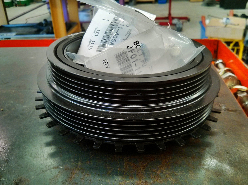 The car is in at MX-5 Plus at the moment getting a few things done. I've had them replace the harmonic balancer with a new one and fit the Protege 36-1 wheel: