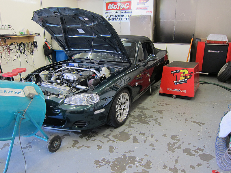 A few changes have been made; MX-5 Plus swapped out my turbo and cleaned up the air intake piping, I'll have to take some photos as Dave did a really good job. As the subframe had to be removed they also fitted my new front shocks and swapped in a depowered steering rack. I'm a big fan of how manual steering loads up on corners!