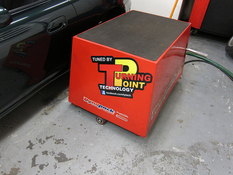 He's using a Dynapack 4000 dyno (the sticker lies), being a hub dyno it is very safe and the readouts are consistent: