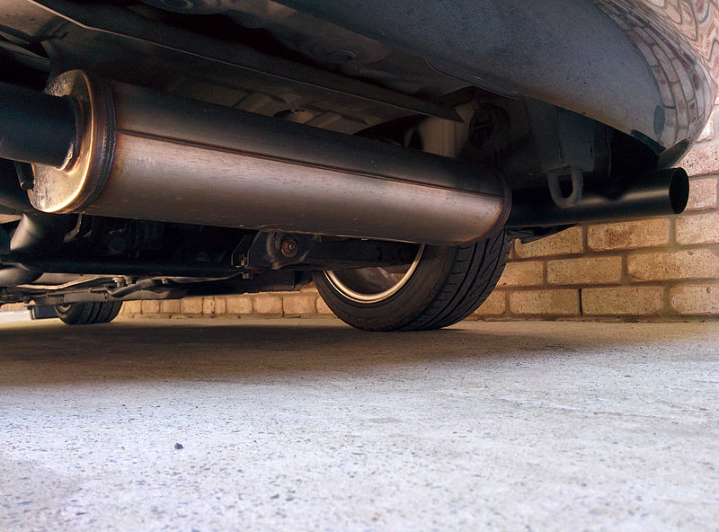 3" dump pipe transitioning to a 2.5" exhaust with 200 cell steel cat and Magnaflow rear muffler
