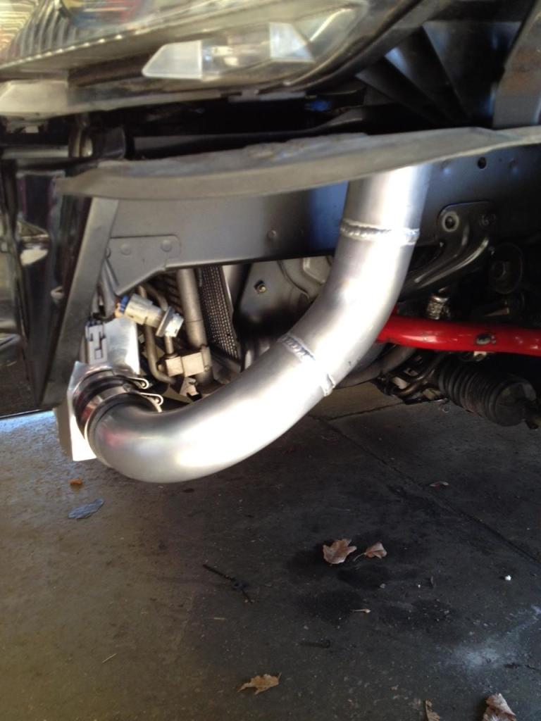 I did the exact same thing except I used 2.25" piping up to a 2.5" reducer at the IC. Where'd you find the molding for the hole your IC piping goes through? I bought a bigger coupler and just threw it there over the pipe.
