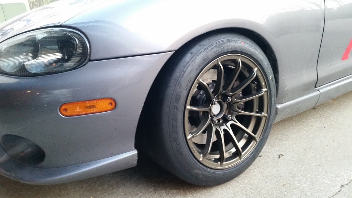 I was out enjoying the nice weather and doing some tuning on my new Reverant built MS3 Basic when I picked up a large nail in the driver's rear tire. A lack of anywhere to pull off and my inability to diagnose the interesting handling aspects means the tire is completely shot now. So now I need some new street tires that can double duty as rain track tires.