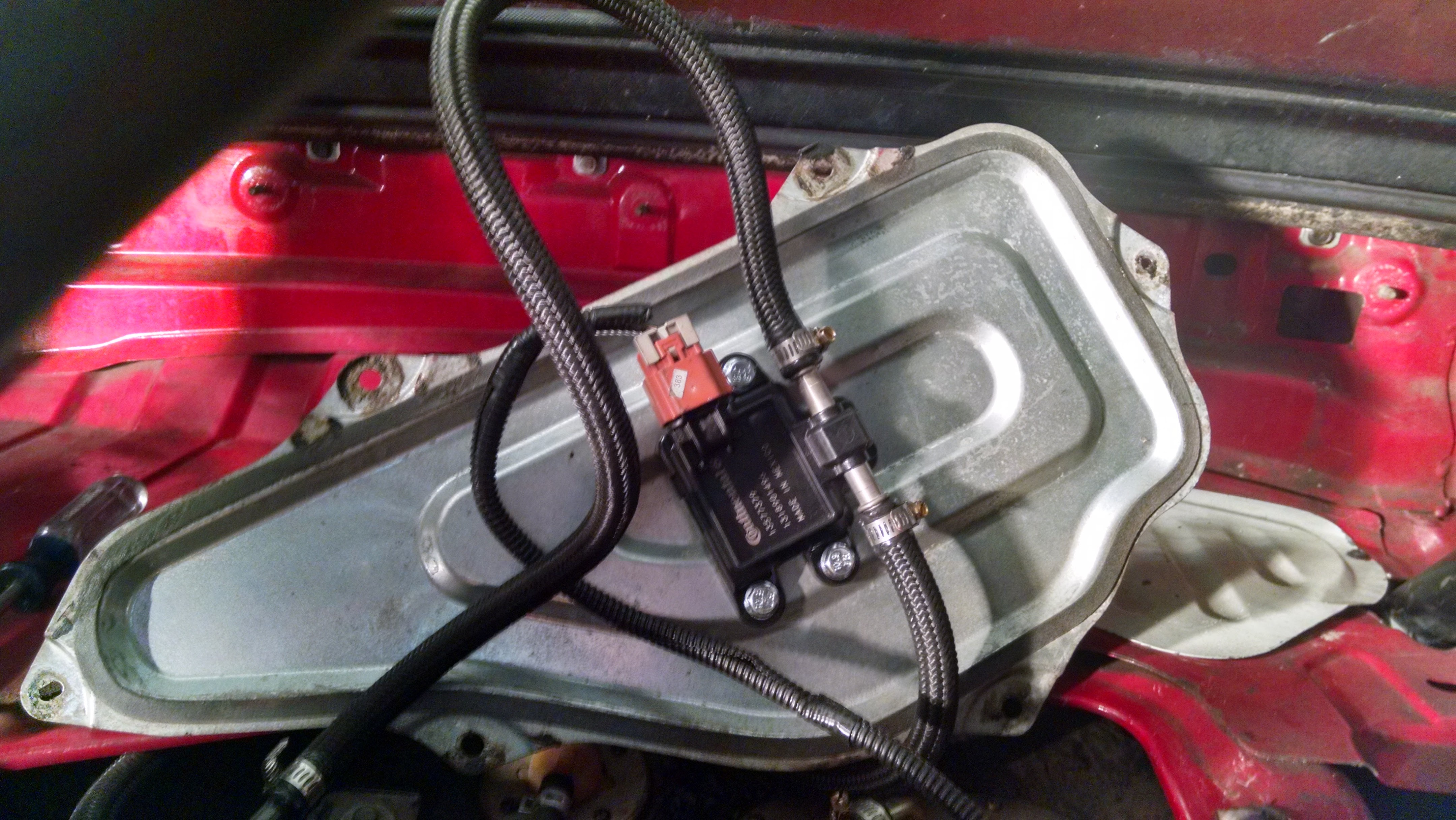 E85 sensor is all plumbed in. Next step is to confirm function in the ECU, then re-tune on E10, then tune on E85. The 10:1 pistons will really like E85. Too bad the rods won't