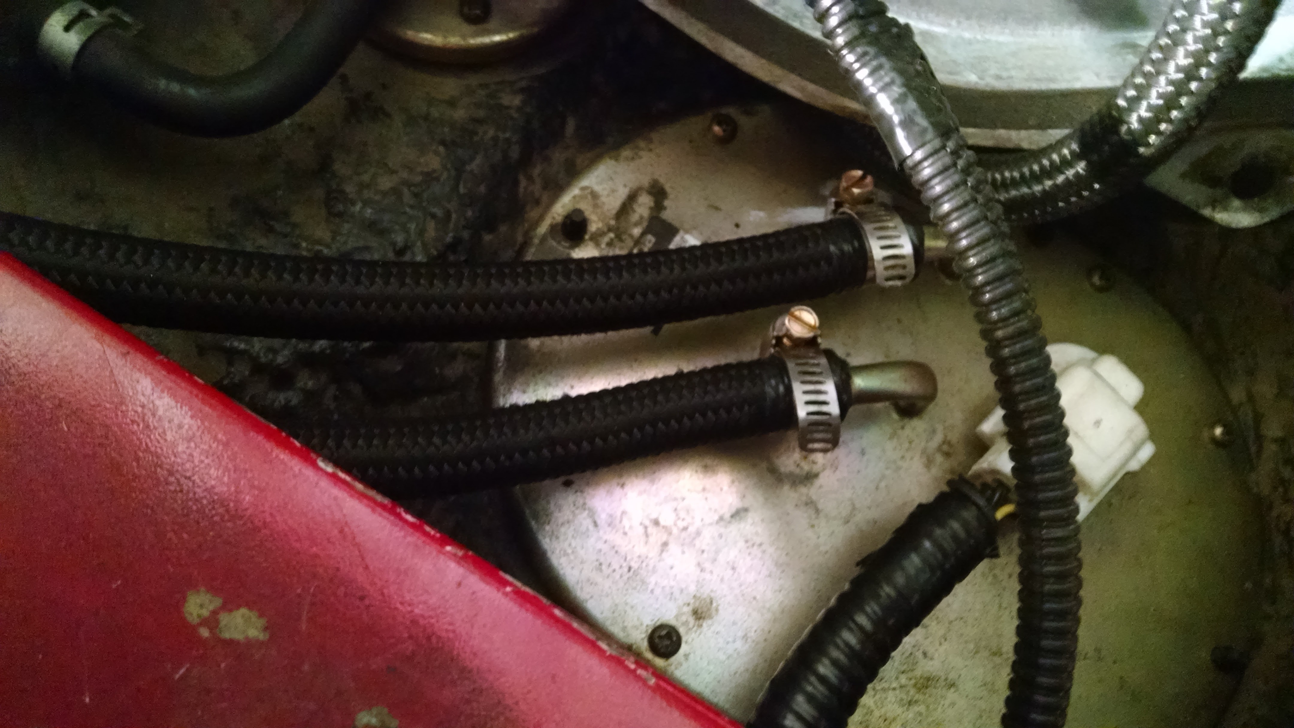 ^^ This is exactly what I used when I re-plumbed my NB as a return system. Proper rated Gates EFI fuel hose, proper EFI hose clamps, proper Dorman or Russell 644113 EFI fittings where appropriate. With 60psi base pressure and a manifold referenced 1:1 regulator I didn't want to take any chances. The risk is not worth the $5 saved on eBay fittings or ¢5 saved on generic hose clamps.