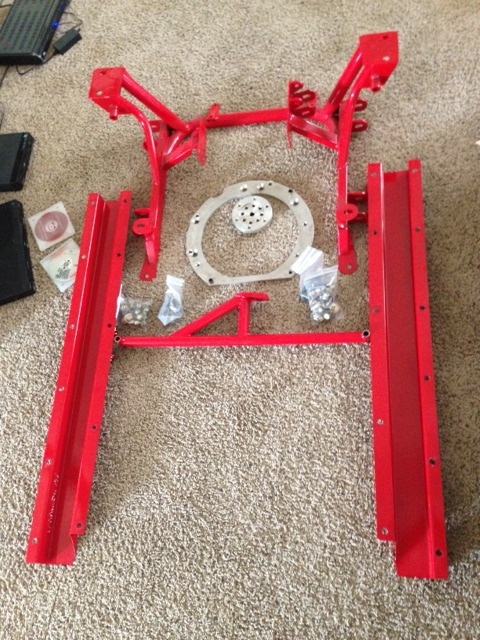 I'm hoping to have the engine mounted in the next few days. I'm a little irritated with it, as the adapter plate for the trans had several holes that didn't want to line up. Oh well, installing this Prothane kit should keep me occupied for a bit.