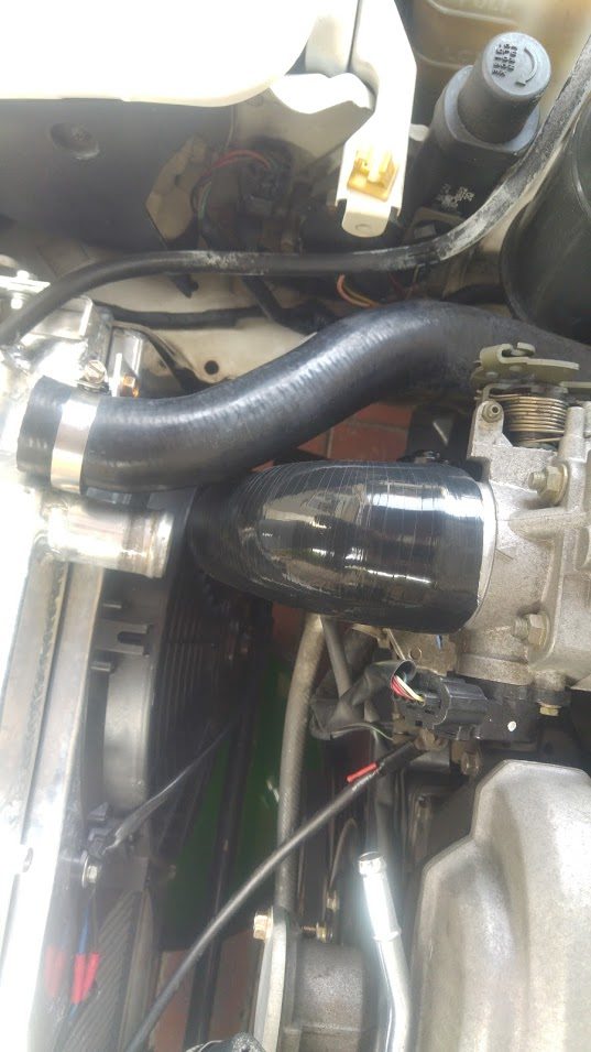 This is my reroute recycling the upper 1.6 rad hose: