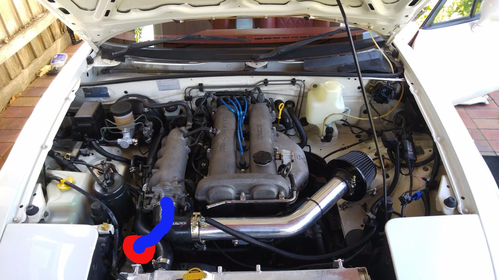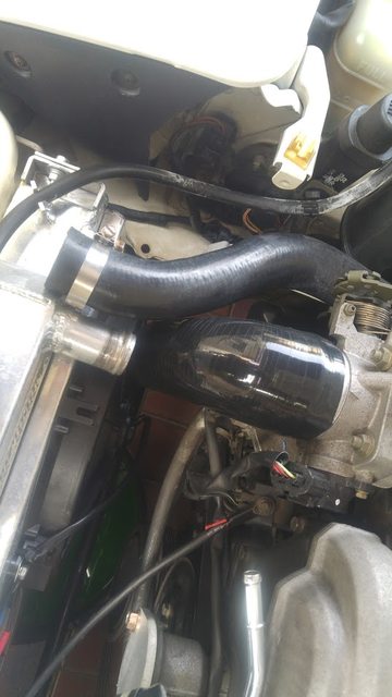 On the engine front, I'm running and Adaptronic 440d (Yes I'm Australian) and an LC-1 wideband. Here's a pic of the temporary intake I make whilst I organise the turbo: