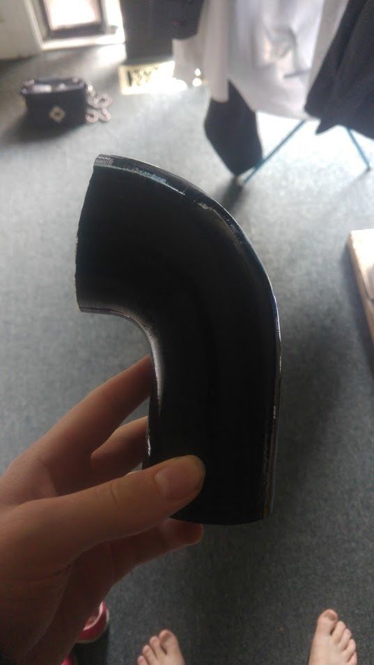 With the TB pipe shooting out at 45deg before doing a 90deg turn down into the red hole. Something something joke about a red hole.