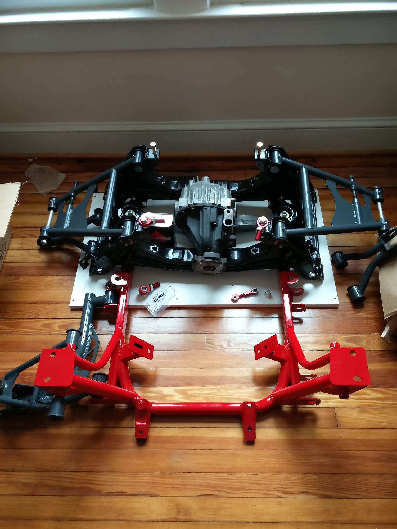 Rear is ready to go in, I just need to get off my lazy *** and press the bearing into the knuckle and the wheel studs through the hubs. **** I forgot, I still need to press in the knuckle upper pillowball bushing.