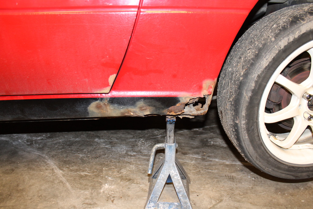 Another challenge: rust... soon to be covered by fender flares. Also notice the ultra rare wheels
