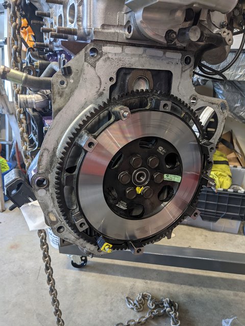 Eventually with the problems after re-assembly, I just bit the bullet and bought another 6spd, tossed it in. It's been amazing. I also in the process installed the Kpower Diff arm reinforcement plates, and diff bushings, and a miata roadster tall angled shifter, which is amazing I will add. If you ever need a way of solo tipping the engine back in order to get a transmission in, this was my method. Questionable, I know, like many of my life choices, but it does work quite well after putting one in for the 4th time. Just don't leave it tensioned for very long.