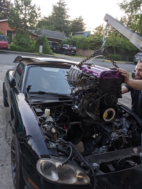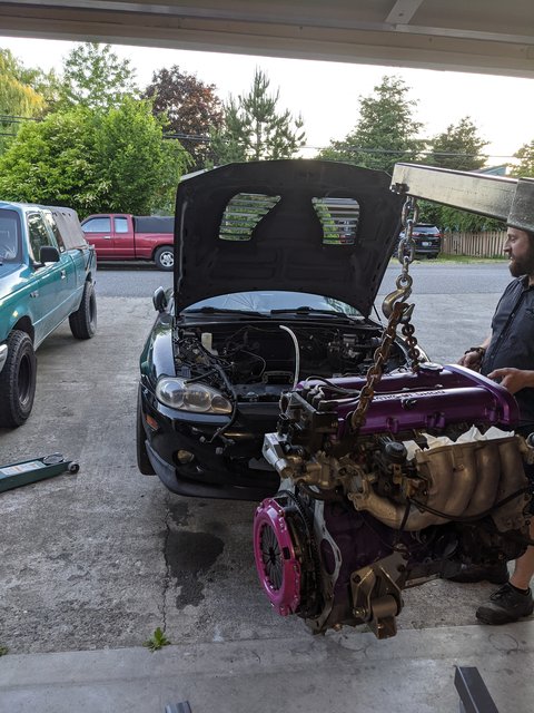 Now with that slight detour for a butt cushion complete, the Miata was ready for it's dinner. With the help of a friend of course.