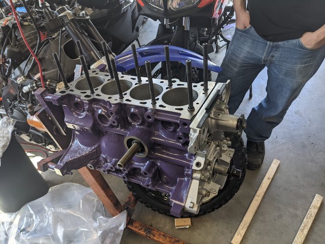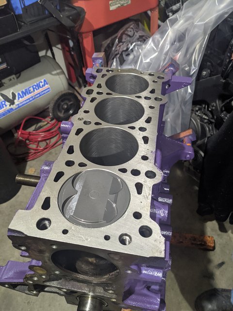 Block machined to nearly zero deck height (in theory I did the math correctly on this for good squish/quench, but I could also suck and have messed it up), my rough math put the overall compression ratio after machining to nearly 10:1. It's been a while. Don't quote me on any of this. I'm not an engine builder.